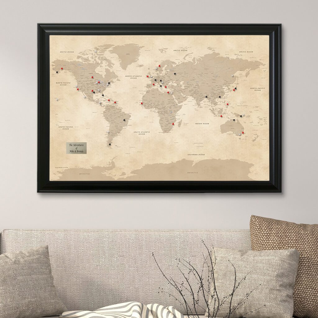 Tan Vintage World Map Framed Art
